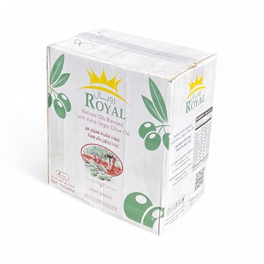 روغن رویال زیتون فرابکر چهار لیتری کارتن 4عددی محصول کشور اسپانیا تاریخ انقضا 2027/09 Royal oil